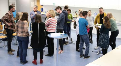 Zum Abschluss begaben sich die Teilnehmenden vom Schulzimmer in die Mensa, um beim gemeinsamen Apéro weiter zu diskutieren, wie man die Schüler/innen am besten unterstützen kann.