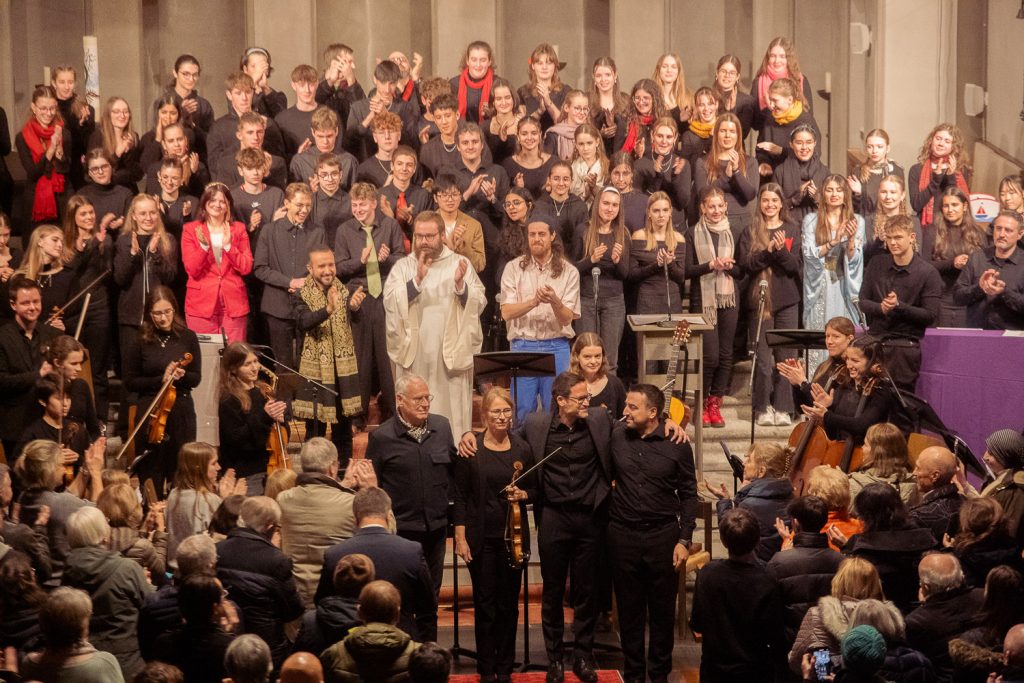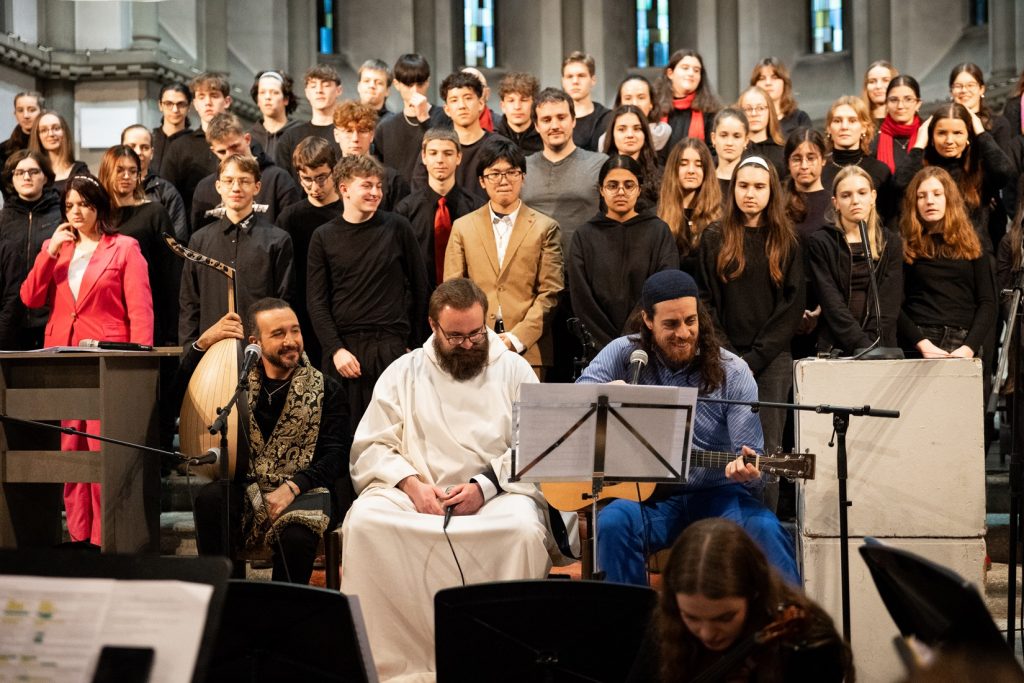 In diesem Sinne erklang – neben der Ringparabel und weiteren passenden Texten – berührende Musik aus der Tradition des Islam, des Judentums und des Christentums. Vorgetragen wurde sie einerseits durch den Chor und das Orchester der Kantonsschule Reussbühl Luzern, anderseits durch Solisten der drei Religionen: Omer Nevo, einen israelischen Sänger und Gitarrenspieler, Pater Benedikt Locher, Mönch und Leiter der Schola im Kloster Engelberg, und Wael Sami Elkholy, einen ägyptischen Sänger und Spieler der arabischen Laute.