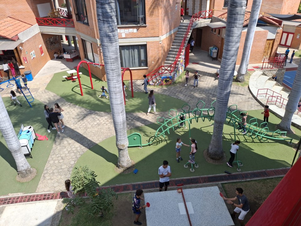 Die Schweizer Schule in Cuernavaca ist eine Gesamtschule. Es gab deshalb auf dem Pausenhof Kinder bzw. Jugendliche vom Kindergartenalter bis zum Maturajahrgang. Der Unterricht dauerte für mich jeweils von acht bis vierzehn Uhr. Zweimal pro Tag gab es eine längere Pause, in der man sich am Pausenkiosk eine Zwischenverpflegung kaufen konnte. Eine eigentliche Mittagspause gab es aber nicht, die meisten Schüler gingen erst nach dem Unterricht zum Essen nach Hause. Ich nutzte die Pausen zusammen mit einigen Jungs und Mädchen aus der Oberstufe vor allem zum Volleyballspielen, gab es doch auf dem Pausenareal ein gedecktes Volleyballfeld.